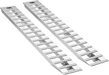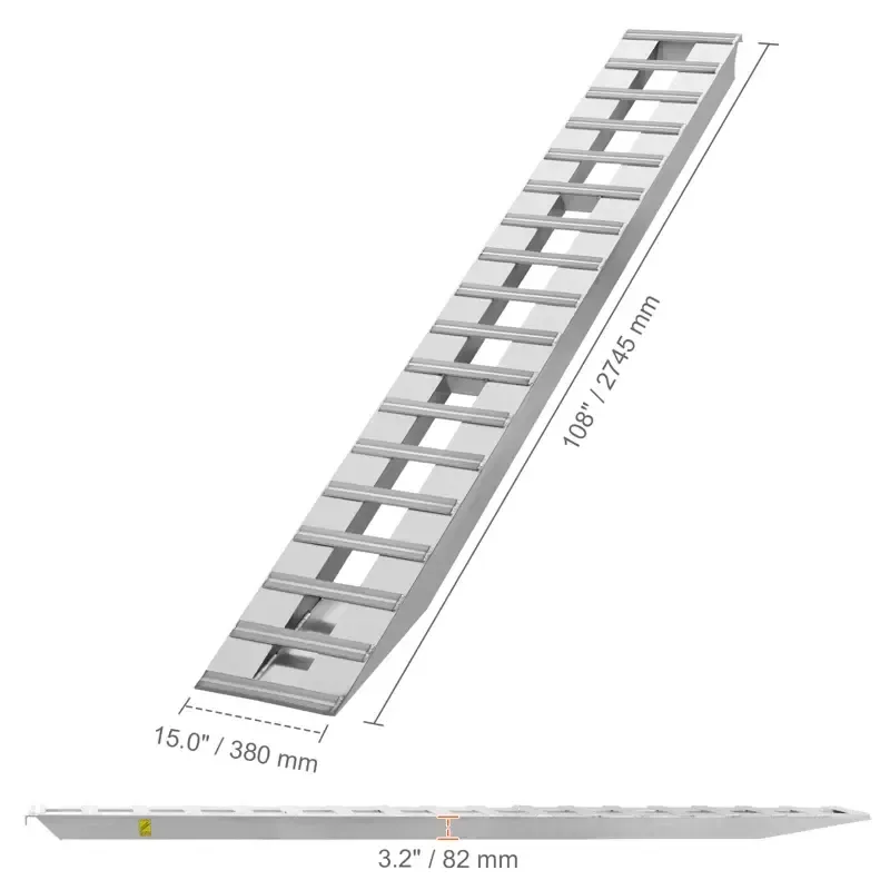 Heavy-Duty Loading Ramp: This loading ramp is crafted from quality aluminum with reinforced welds. Its thick cross rungs and dual cross support tubes ensure even weight distribution, while solid beams handle heavy loads without bending or breaking