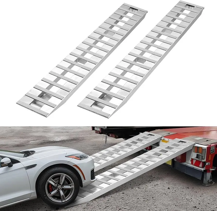 No Slipping, No Shifting: Our aluminum loading ramp features tightly spaced tread grooves for enhanced grip, helping tires stay firmly in place. The textured surface improves traction and stability, making cargo transport smoother and more secure